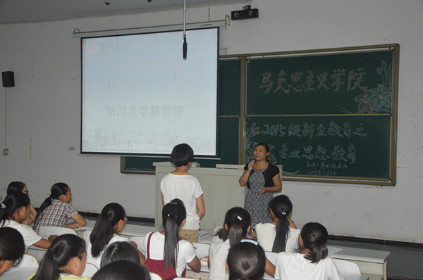 教科办廖文梅老师担任主讲的“2015级新生入学教育之学习及学籍管理”于图北楼7101教室准时举行,2015级全体新生参加。