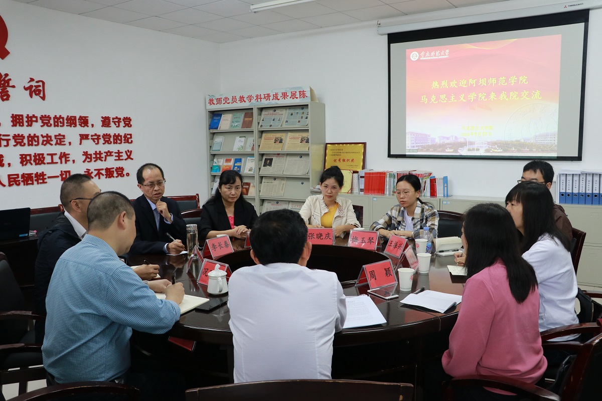思想政治教育专业人才培养方案修订工作和思想政治理论课教育教学改革情况作了详细说明。阿坝师范学院马克思主义学院副院长刘永国教授也向与会人员介绍了他们学校的发展历史、师资队伍、学生特点等基本情况。