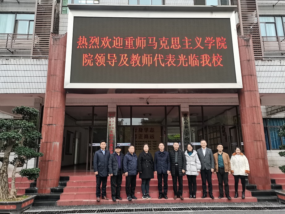 为有效推进“一院一区一县一片”对接工作,根据学校的工作部署和学院的工作计划,2021年12月14日,学院党委书记李晓燕、学校国内合作与联络中心副主任段文书、学院副院长况明安、党委副书记方敏、思想政治教育系副主任田方林组成工作组前往綦江区,开展“一院一区一县一片”情况调研与对接工作,介绍学校和学院情况,开展招生宣传,推荐毕业生就业,寻求校地合作,了解校友情况并筹备綦江校友分会。