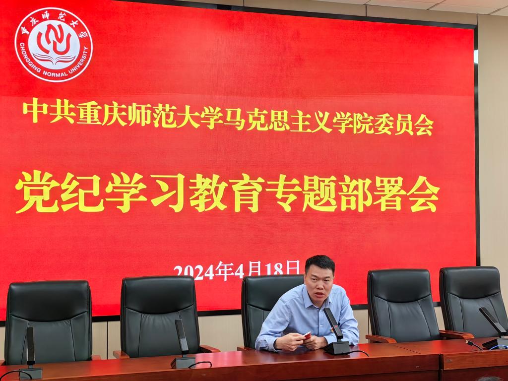 李晓燕传达了党中央有关党纪学习教育的一系列周密部署,并按照学校党纪学习教育专题部署会议精神提出四个方面的要求:一是提高政治站位,深入学习贯彻习近平总书记关于党纪学习教育的重要讲话精神;二是提高思想认识,深刻领会开展党纪学习教育的重要意义;三是坚持问题导向,推动党纪学习教育走深落实;四是加强组织领导,推动全院党纪学习教育融入日常、抓在经常。李晓燕强调,在全党开展党纪学习教育,是以习近平同志为核心的党中央作出的重大决策,是加强党的纪律建设、推动全面从严治党向纵深发展的重要举措,是一项重要政治任务。他表示,马克思主义学院作为学习研究宣传党的创新理论的主阵地,要带头深入学习贯彻习近平总书记关于党纪学习教育的重要讲话和重要指示精神,贯彻落实中央、市委、学校党委关于党纪学习教育的决策部署,明确“学纪、知纪、明纪、守纪”党纪学习教育要求,用党规党纪校正思想和行动,切实做到知敬畏、存戒惧、守底线,持续营造调教母狗