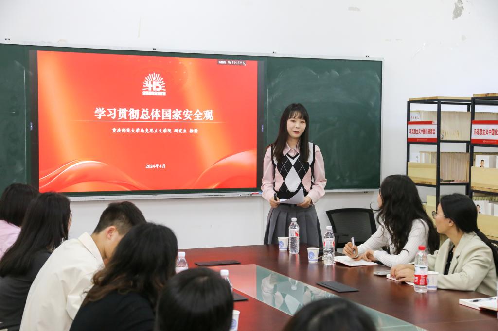 最后,中共重庆大学城树人小学校党支部青工委员高莉同志作总结。她首先对此次活动的举办表示感谢,指出了国家安全的开放性、包容性与复杂性以及学习总体国家安全观的重要性,并强调基层共产党员要增强忧患意识,居安思危,始终保持学习的心态和清醒的头脑,注重自我在思想上、理论上和能力上的提升,聚力筑牢国家安全屏障,始终坚持做到为党育人,为国育才。