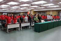 本次开学典礼在庄严的国歌中正式拉开帷幕。