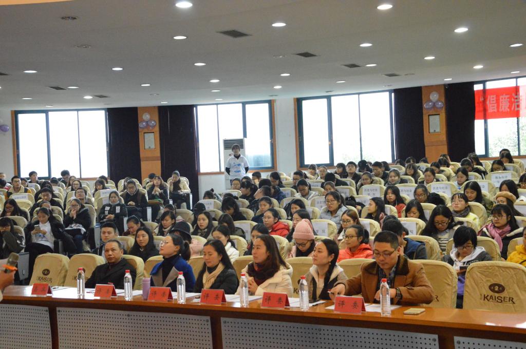 为响应党的十九大反腐倡廉号召,迎接“12.9”国际反腐败日,营造廉洁的校园风气,提高大学生思想道德修养。2017年12月7日,由中共重庆师范大学纪律检查委员会主办、共青团重庆师范大学委员会协办、重庆师范大学马克思主义学院三春湖廉风学社承办。“倡廉洁风气,扬中华精神”廉洁演讲比赛决赛在弘德楼凯撒报告厅举行。本次活动特邀校团委书记毛霞,监察处副处长彭林,国际汉语文化教育管理办公室副主任左金隆,外国语学院党委副书记、纪委书记钟敏,音乐学院党委副书记、纪委书记文琪,纪委监察处正科级纪检监察员、三春湖廉风学社指导老师戴杰担任本次活动的评委。