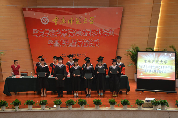 2016届本科学生毕业典礼暨授位仪式圆满落幕。相信马克思主义学院2016届学子将继承和发扬马克思主义学院的优良传统,用他们的知识、技能和智慧去迎接新的挑战;用他们的信念、顽强和勇气去抵御困难和挫折;用他们的虚心、耐心、务实去开创成功之路!