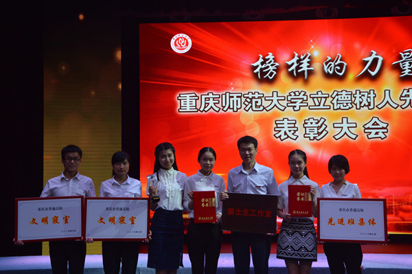 为进一步彰显榜样的力量,充分发挥先进典型的示范引领作用。重庆师范大学于 2016年06月13日下午7点30分,在校友会堂隆重举行了“重庆师范大学立德树人先进典型表彰大会”。重庆师范大学校长周泽扬、党委副书记龚燕、中国高教协会辅导员工作研究会秘书处办公室主任夏晓虹、重庆市教委宣教处处长吴边、重庆市教委宣传处副处长杨文豪、厦门银行重庆分行行长王俊猛、厦门银行重庆分行营业部总经理曾岑等领导担任本次大会的嘉宾。重庆师范大学大学生思想政治教育工作领导小组组成单位负责人、机关职能部门领导、各学院党政部门主要领导、分管领导、全体辅导员以及学生代表参加本次大会。