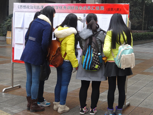 全体思想政治理论课教师以认真负责的态度,积极探索这一新的教学任务和教学方式。老师们采取集中培训、个别面谈、网络沟通、电话联系、文字修改等多种方式对学生的实践教学活动和调研报告撰写进行了全程监控和悉心指导。此次思想政治实践课教学优秀调研报告成果汇报展不仅在于表彰优秀,也期望得到广大师生对思想政治理论课实践教学的了解、支持和帮助。