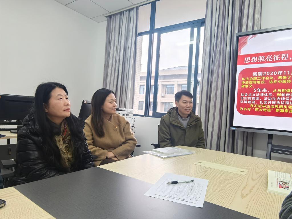 在本次主题党日活动中,支委成员侯发兵以《以高质量法治保障中国式现代化行稳致远》为题进行了讲党课。讲课过程中,梳理了近几年我国法治建设领域的一些“大事”,在此基础上明确要深刻把握全面依法治国的历史性成就——习近平法治思想。在明确高质量法治五大方面要求的基础上,强调以高质量法治保障中国式现代化行稳致远。