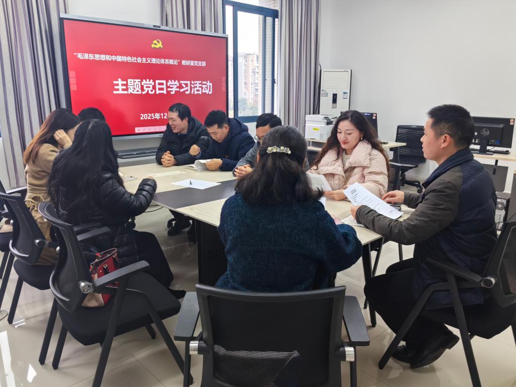 2025年12月25日下午16:20,毛中特概论教研室党支部12月主题党日活动在马克思主义学院汇贤楼410室举行,支部党员围绕“第一议题”等内容开展深入学习。支委成员侯发兵主持会议并讲党课。学院党委委员姜土生同志到会指导。