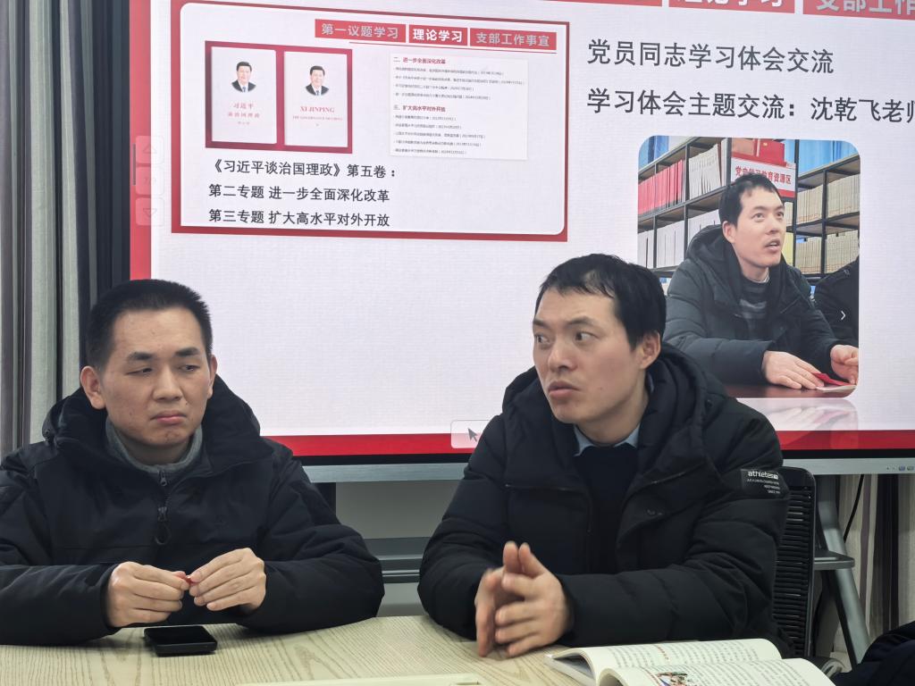 理论学习方面,仲娜同志围绕《习近平谈治国理政》第五卷第四专题“因地制宜发展新质生产力,实现高质量发展”和第五专题“一体推进教育科技人才事业发展”的内容进行了领学。她在领学中指出,当下我国面临经济领域的新形势新情况,“发展新质生产力特别重要”,同时需要统筹好各方面关系,它直接关系到“十五五”规划目标的完成和2035年战略目标的实现。沈乾飞以农业领域的高质量发展谈了自身体会,认为农业发展不仅仅是现代人才和科技的问题,也是经济社会发展的问题,当下“脐橙”等某些农产品的滞销反映了我们农业消费领域的新变化新动态,其解决不仅需要从生产端还需要从消费端尤其是从提高收入着手。