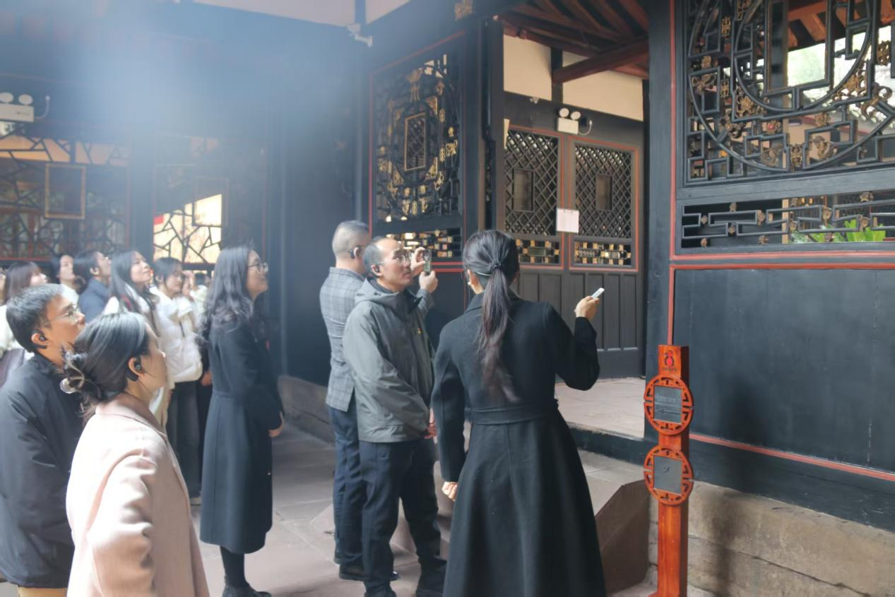 随后,研学成员们前往双江古镇依次参观杨闇公故居及杨氏民宅。走进杨闇公故居,同学们在实地探寻中深入了解其为革命不懈奋斗、直至牺牲的壮烈情怀,也从他“人生如马掌铁,磨灭方休”的誓言与29年生命里的不朽贡献中,深刻领悟到坚韧不拔的意志、无私奉献的精神;来到杨氏民宅,同学们在一展一物的探寻中,细细研读杨氏家风家训的深厚底蕴,进一步感受家族传承中蕴含的精神力量。