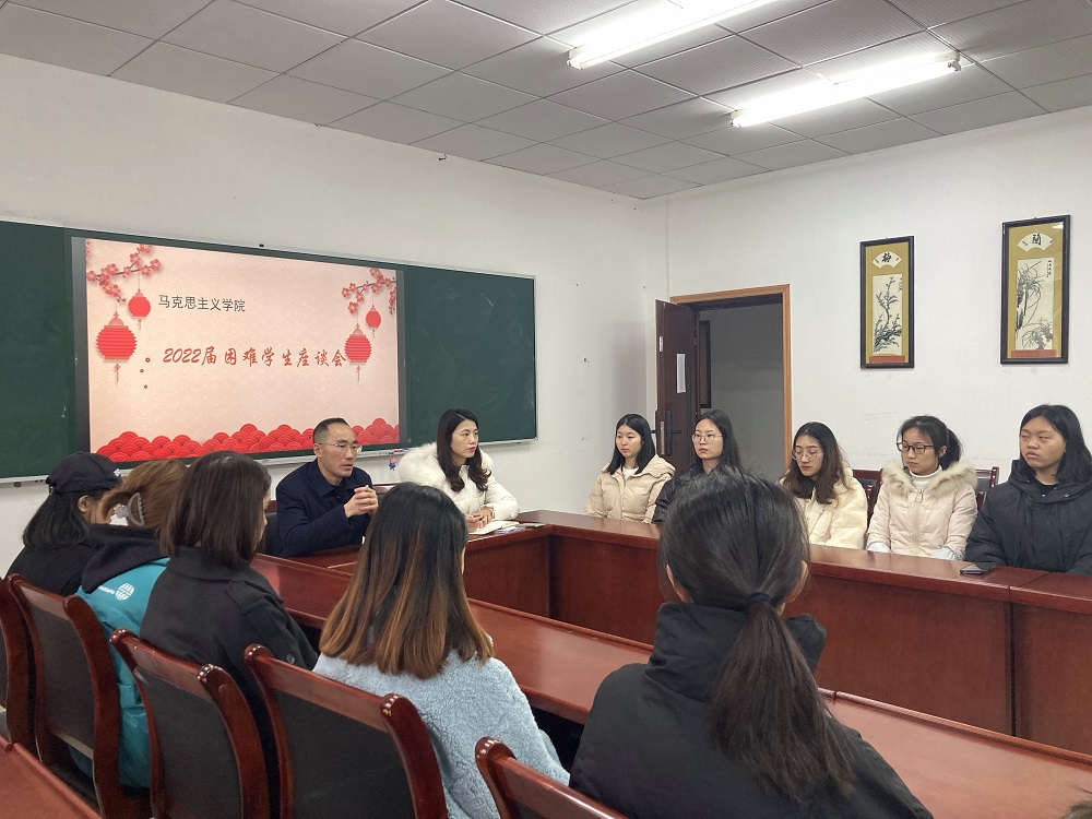 为鼓励困难毕业生坚定理想信念,克服困难,积极准备考研和就业,2021年12月8日上午,马克思主义学院于汇贤楼309会议室召开2022届困难毕业生座谈会。学院党委书记李晓燕、毕业年级辅导员刘洪及2022届全体困难毕业生参加了此次座谈会。